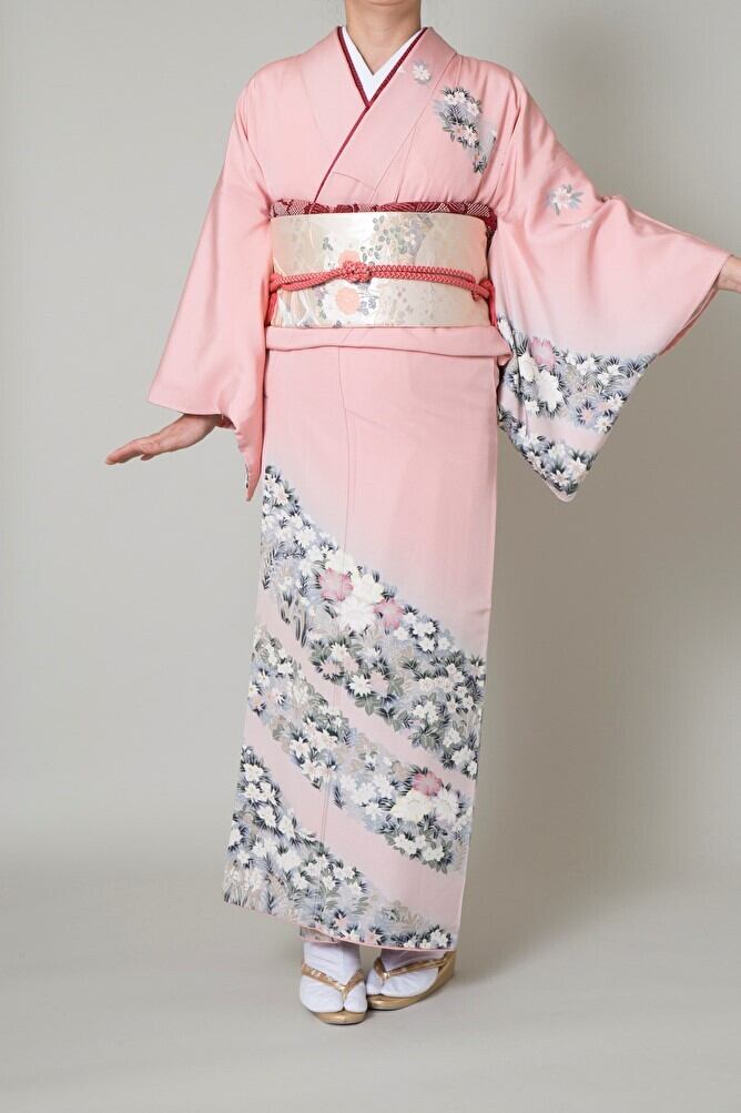 サーモンピンク地で華やかに